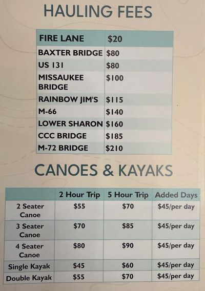 This trip is excellent for everyone: beginners, pros, families with smaller children, etc. Whether you wish to canoe, kayak, raft, or tube. You can enjoy the calm water with many shallow sections as it curves its way through a wildlife sanctuary. Try stopping at one of the many sand bars for a picnic, or a leisurely swim. This trip is set on your time schedule, take as little as two hours or most of the day to enjoy yourselves. This trip starts from the livery and goes down to the M-115 bridge where the Lions Club Park is located which has picnic areas. Feel free to browse our other trips on the inside of the brochure as well.